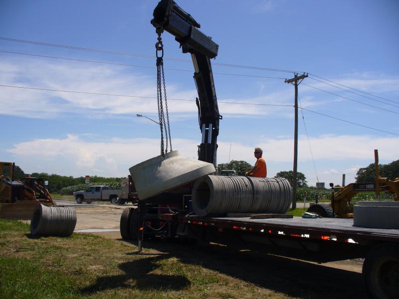 With our 2 Knuckle Boom Cranes we can move your concrete products, lumber and other items.